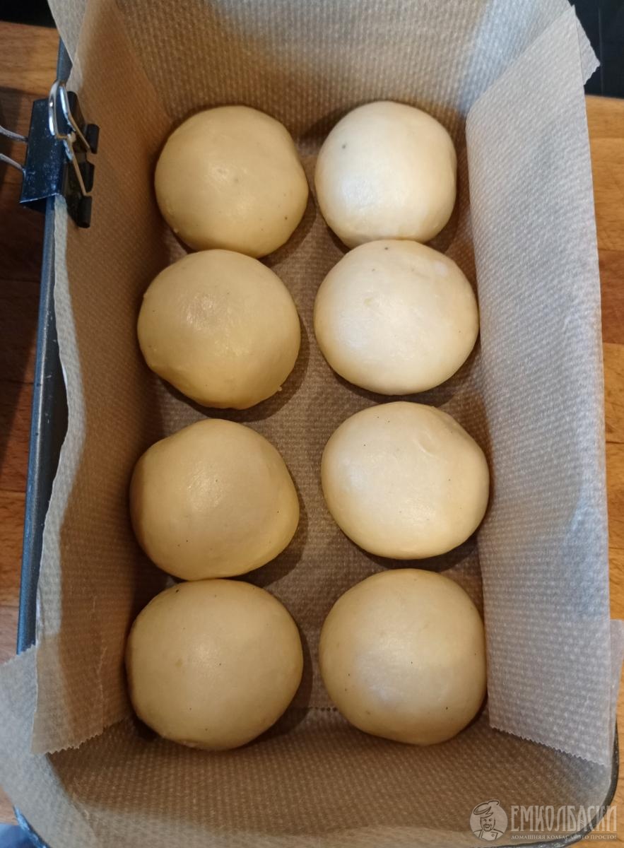 Кусочки по 72-73 г, скатала шарики и выложила по 8 штук в каждую форму.