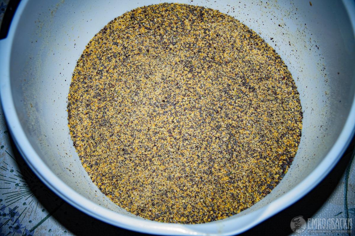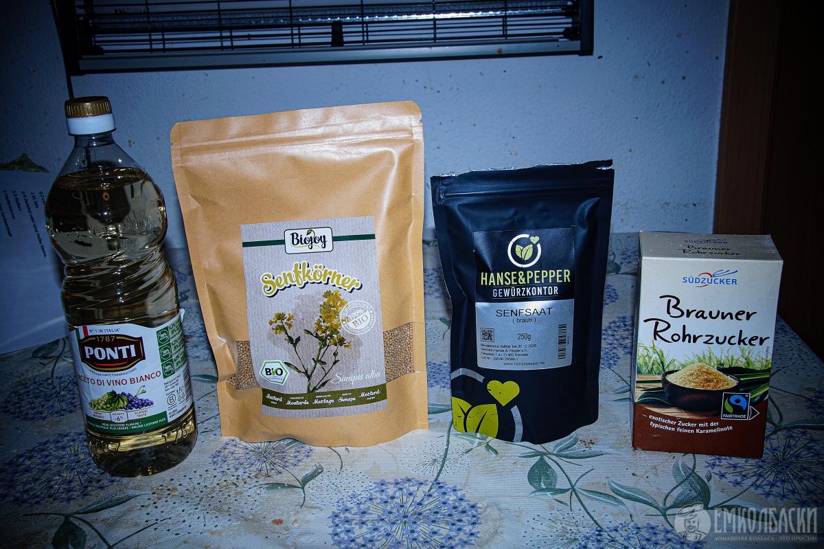 Жёлтую горчицу надо измельчить мелко, кориччневую горчицу немного грубо измельчить