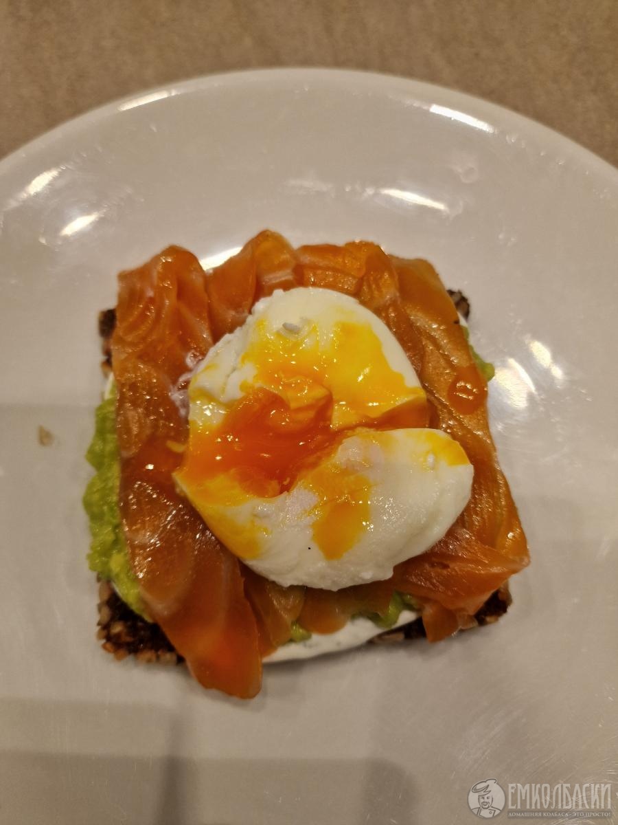 - бутерброд с рыбой на фото - пример, как можно удивить близких: поджаренный черный хлеб с семечками, козий сыр, гуакомоле, ваша малосольная форель и сверху яйцо пашот - сытный вкусный завтрак, хотя и не быстрый))