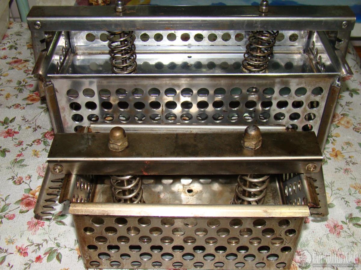 эти гайки меняешь на простые гайки,  и поджимаешь пружины так чтоб когда ставишь ручку пресс формы с зацепами, зацепы опускаются не доходя верха пресс формы на 1см,  и ты спокойно зацепляешь зацепы за первый зацеп без давления на фарш в пресс форме