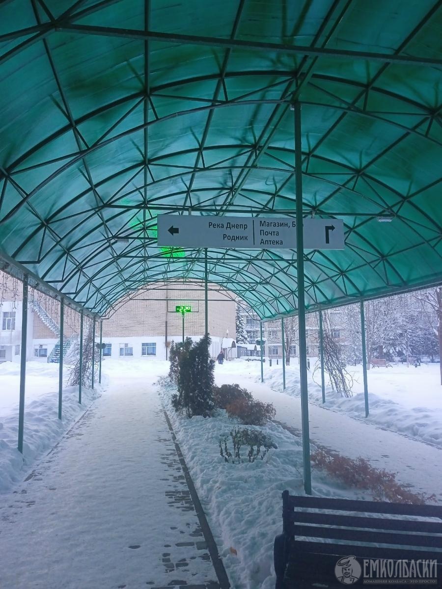 Придавил морозец там до -27, аномалия для тех мест. Хорошо хоть в кожаных куртках не уехали, как первоначально задумано, +9, +11 было. Днепр замёрз и сразу рыбаки на нём образовались. Из-за мороза не побегал на лыжах, дают там на прокат посуточно, всё есть. Несколько фото скину, передать обстановку лечебного заведения.