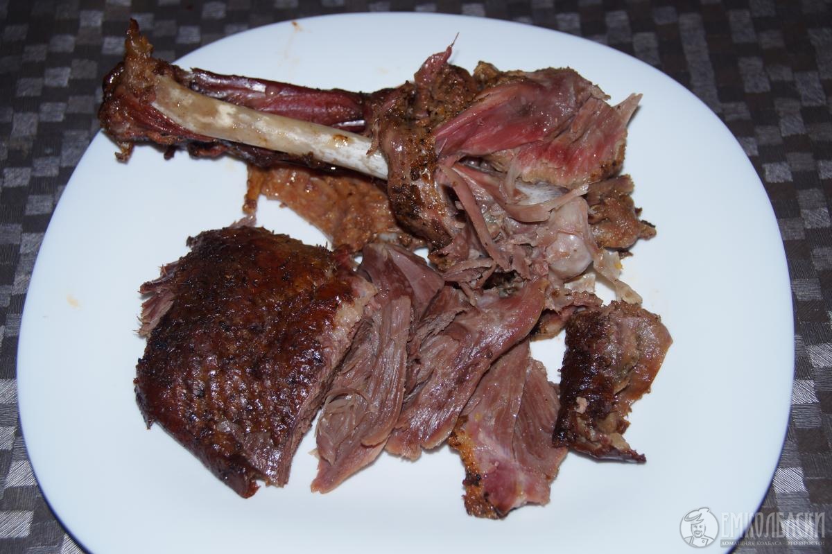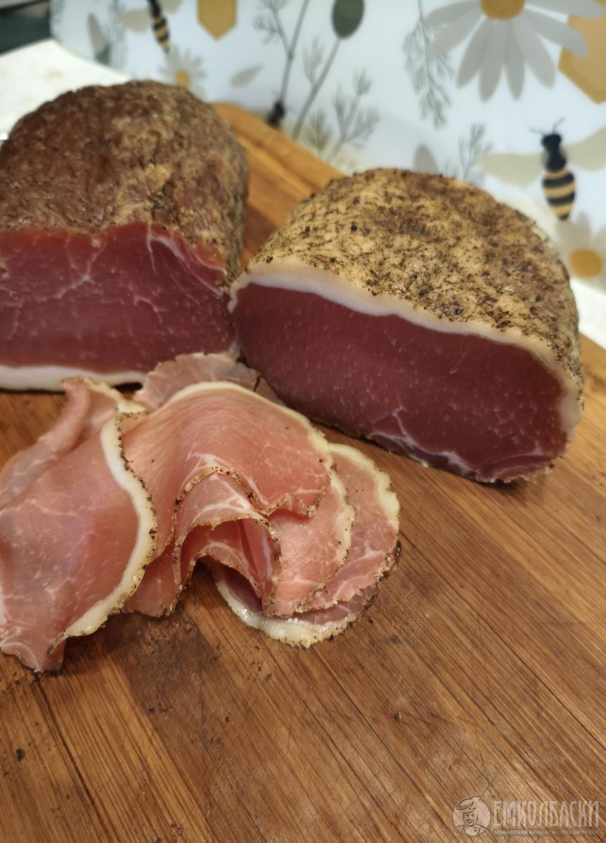 Один год просто в чудо-пакете и в сетке и два года сверху вакуумный пакет. Получился совершенно гомогенный "кирпич". Что жир, что мясо - одинаковой плотности без какой-либо текстуры. Тем не менее, жир не прогорк, тонко режется, гнëтся, держит форму. Удивился, что специи вполне сохранили все ароматы. Во рту тает как тот пресловутый марципан.Выдержка в чём заключалась?