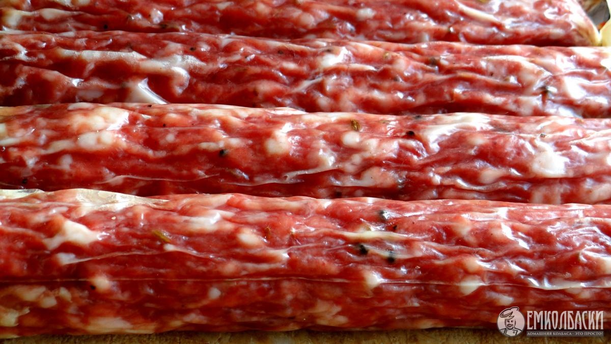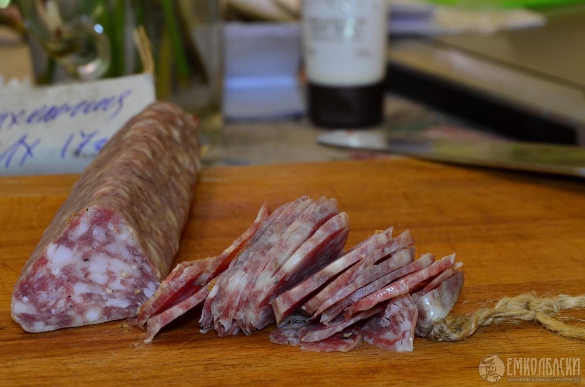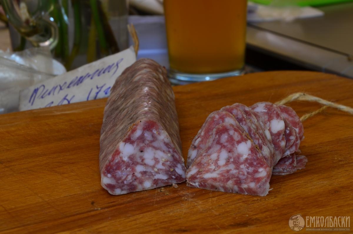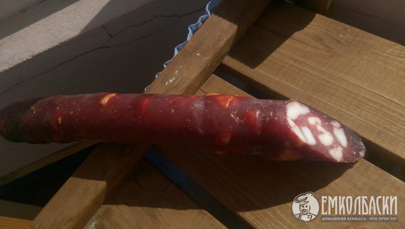 Не мудрствуя лукаво, я решил взяться за данный рецепт, но внес свои коррективы. Одновременное соседство красного сухого вина и сухого молока меня ничуть не смутило, так как я уже сталкивался с таким соседством сырья в рецептуре салями Филино от Дмитрия Фреско и результат был потрясающим. Однако я не стал использовать этот прием в данном рецепте, поскольку состав уж очень похож, и поэтому исключил сухое молоко.