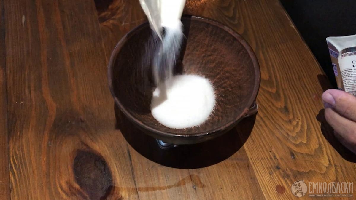 - Нитритная соль пополам с Поваренной солью в соотношении 50/50 – всего 15 гр.