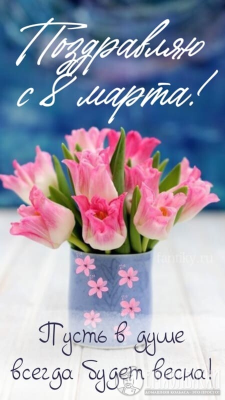 Дорогие, любимые нами женщины, от всей души поздравляю Вас с праздником 8 Марта! Желаю Вам счастья, удачи, всегда прекрасного настроения!