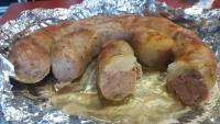 Классически эту колбасу готовят в духовке при 150С в течение 25-40мин.