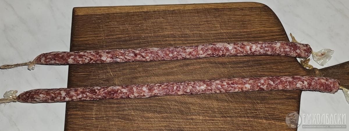 Я тут решил кнуты сделать, до этого делал только бастурму. Приобрёл оболочку мембрин 32мм. Колбаски весят 15 день в камере 10-12гр. сначала поддерживал влажность как для сыровяла потом прекратил, так как колбаски не сохли. На данный момент усушка 35-40% но колбаски средней жёсткости. Их есть можно? Разреза сегодня первую и повесил остальные в квартире.